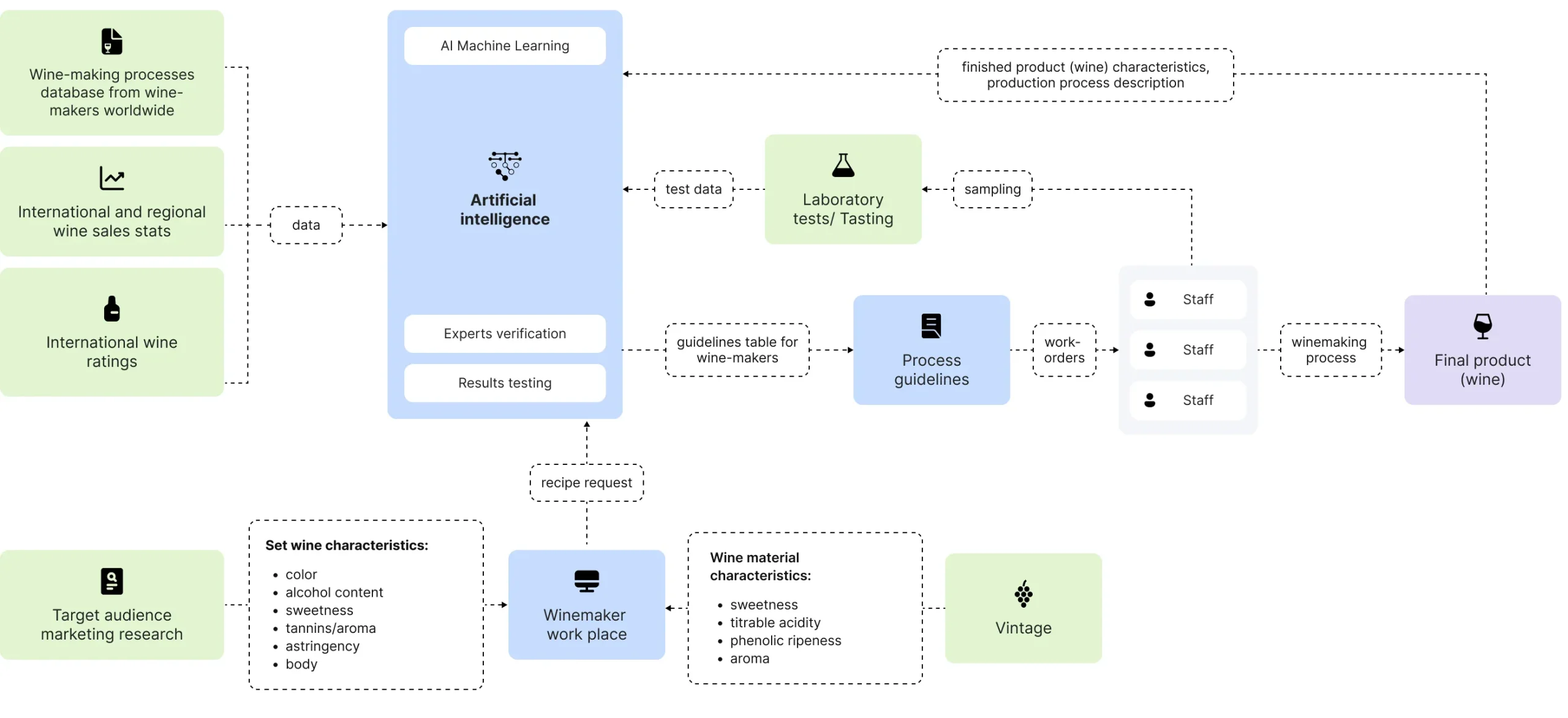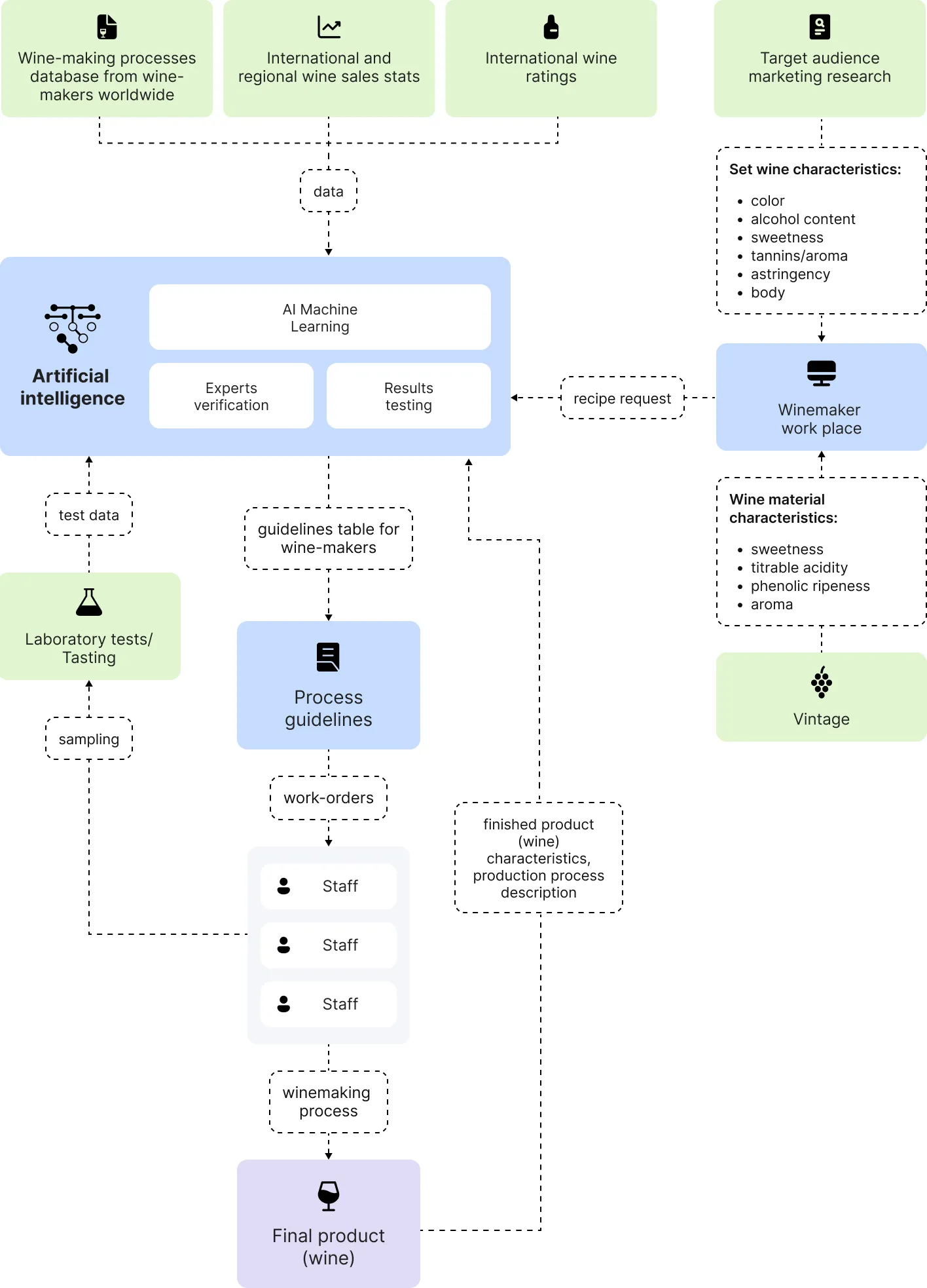 Digital Winery is a system for automation and control in vitivinicultura enterprises that uses AI to create wine with specific characteristics